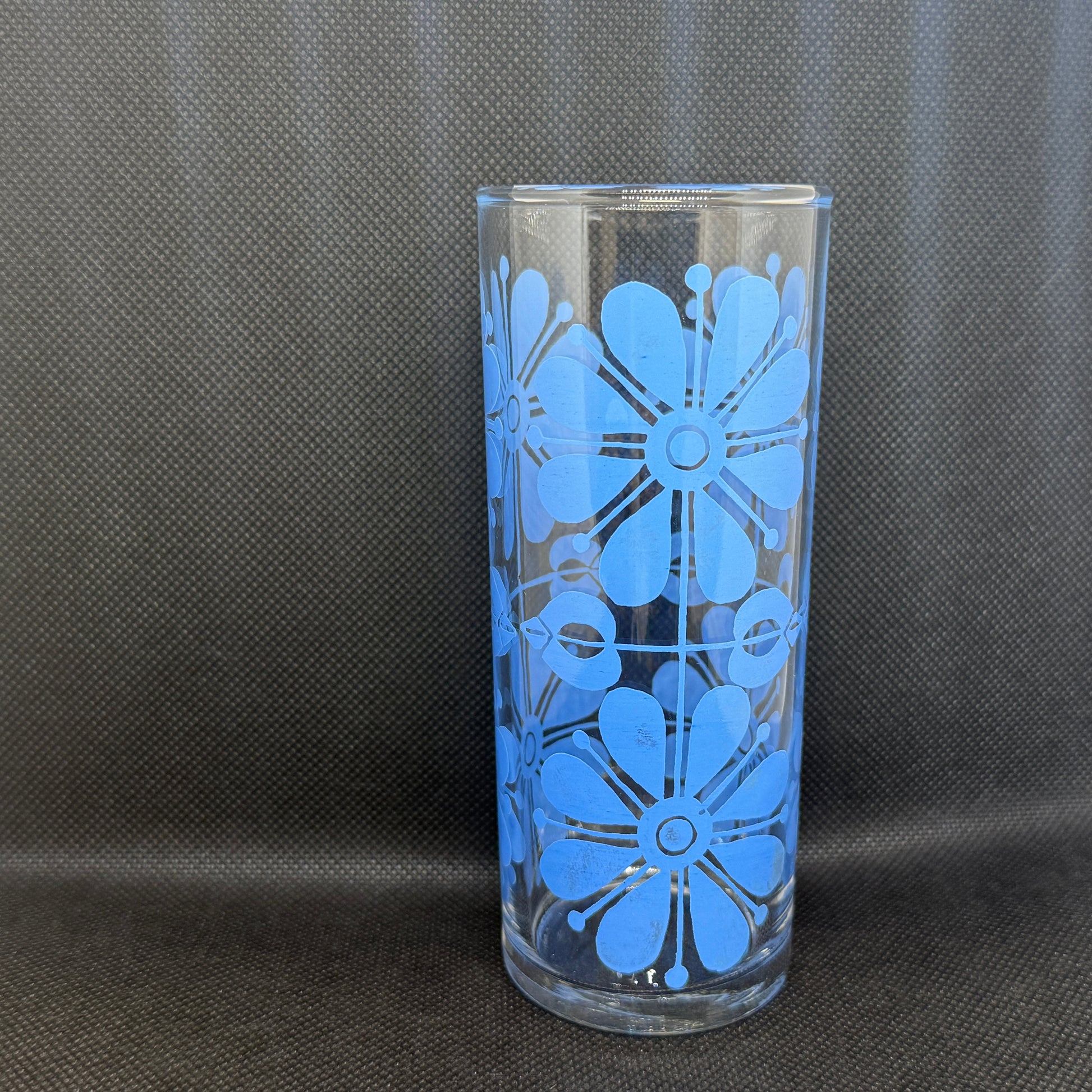 【昭和懷舊風】大花花紋 高身玻璃杯 5色5個套裝(淺藍色)
