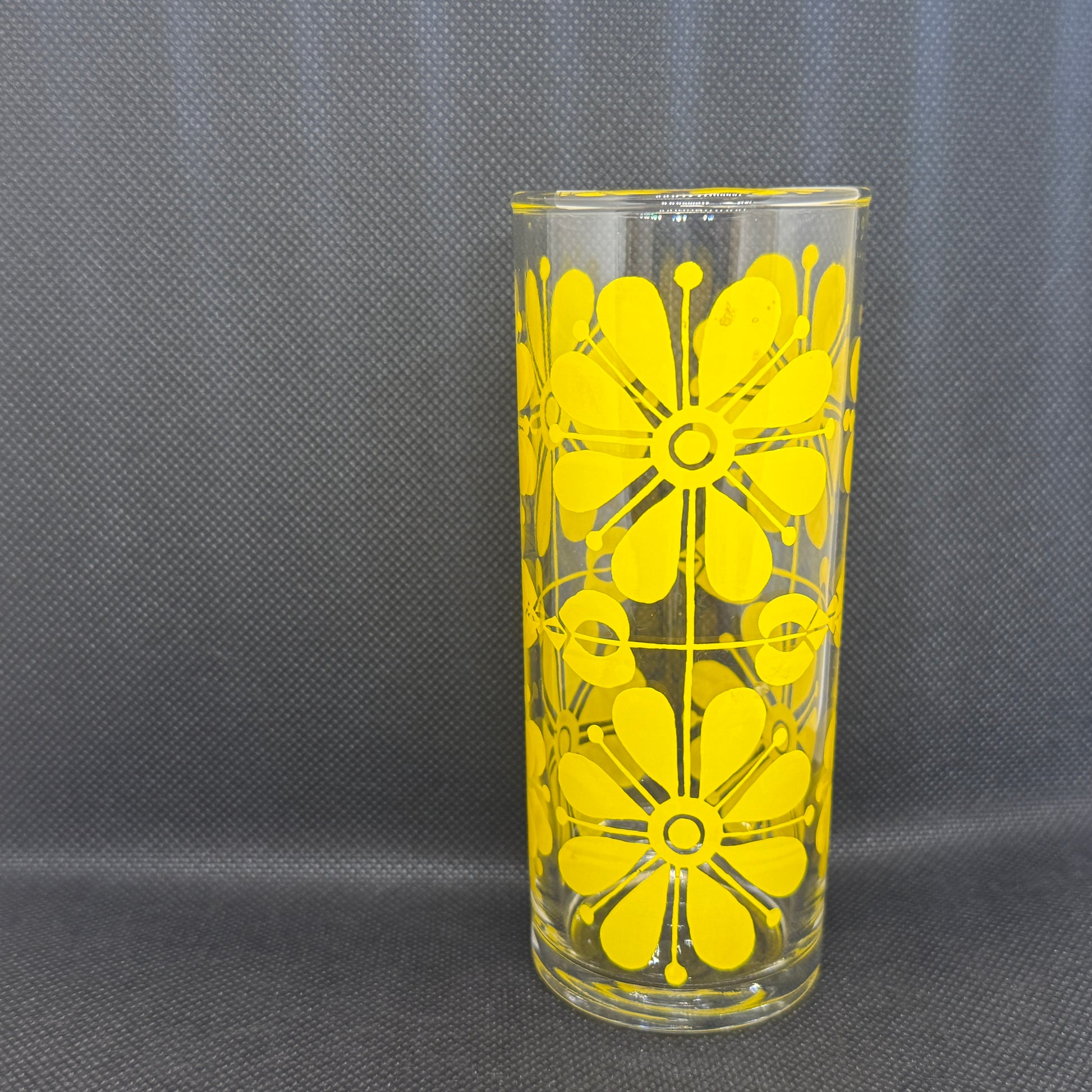 【昭和懷舊風】大花花紋 高身玻璃杯 5色5個套裝* (黃色)